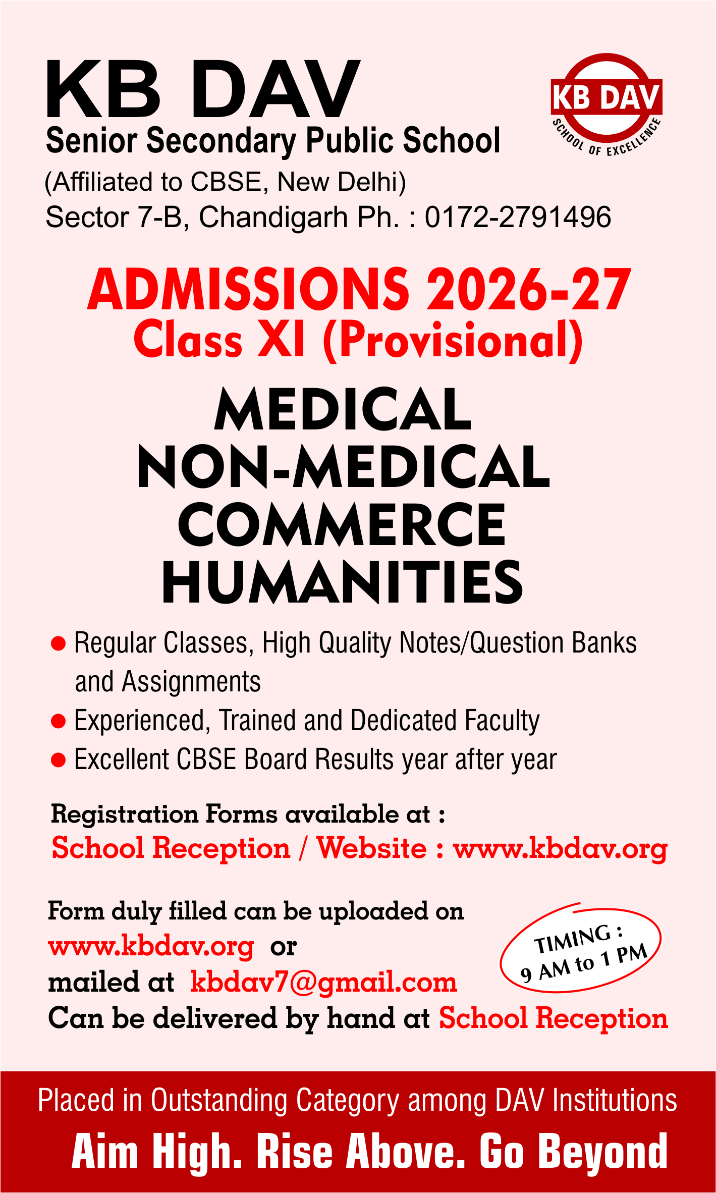 KAILASH BAHL DAV SR. SEC. PUBLIC SCHOOL Sector 7-B, Chandigarh - 160019, (UT) Phone: 0172-2791496, 0172-2792433
