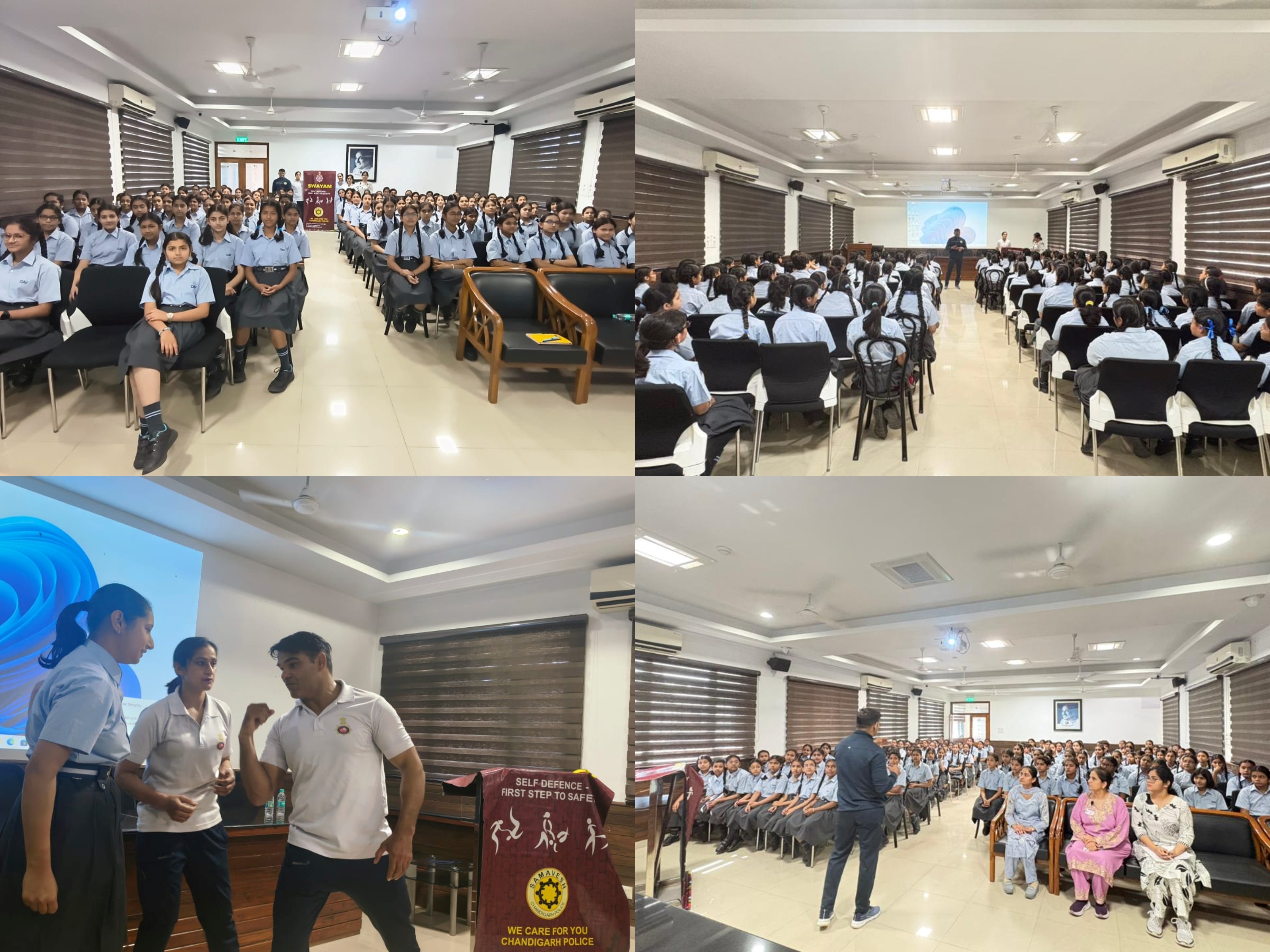 KB D.A.V. Senior Secondary Public School organized a two-day Self-Defence and Awareness Program on April 13 and April 15, 2026, at BS Bahl Hall for girl students of Classes VI to X. The sessions were conducted in batches by Senior Constables Ms.Balvinder Kaur and Mr. Pawan from Sector 9, associated with the Swayam team.